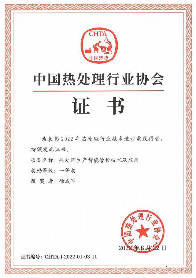 中國熱處理行業證書